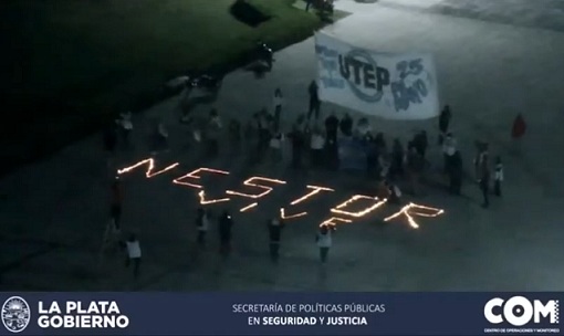 Un grupo de militantes kirchneristas, identificados con la Unión de Trabajadores y Trabajadoras de la Economía Popular (UTEP), realizó las pintadas en la Plaza Moreno de calle 12 y 53 de La Plata, con la consigna de "Nestor Vive", tras lo cual "con material inflamable lo prendieron fuego", comunicaron desde la Comuna platense al referirse a la pintada que realizaron y luego prendieron fuego para recordar al Ex Presidente de la Nación fallecido hace diez años.