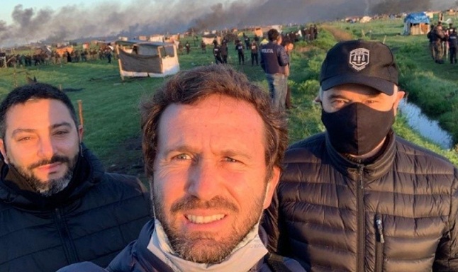 En medio de un desalojo con 4000 efectivos policiales, balas de goma, incendios, pedradas y palos, los fiscales de la causa por la toma de los terrenos en Guernica, Juan Cruz Condomí Alcorta, Lisandro Damonte y Marcelo Romero se sacaron una selfie que no fue bien recibida.