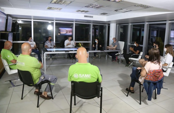 En la reunión estuvieron presentes las autoridades de ABSA, Marcos Ferreyra, Jorge Santellan y Alejandro Gómez; la Secretaria de Desarrollo de la Comunidad de la Comuna, Julieta Quintero; la presiente del Concejo Deliberante, Ileana Cid; el subsecretario de Gestión del Riesgo, Rodrigo Páez; representantes de la Secretaría de Salud, entre otros.