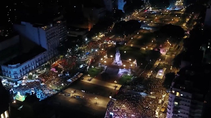 La votación del aborto legal se vive como un mundial y eso va desde el nene que patea el globo verde sobre Callao de puntín, lo sube con la rodilla, lo lleva al pecho y no lo deja caer hasta el revoleo de remeras, la sensación de ser parte de algo más grande, la identidad a partir de un color que expresa algo más que una sola propuesta y el fervor con el que se espera el juego y el resultado.