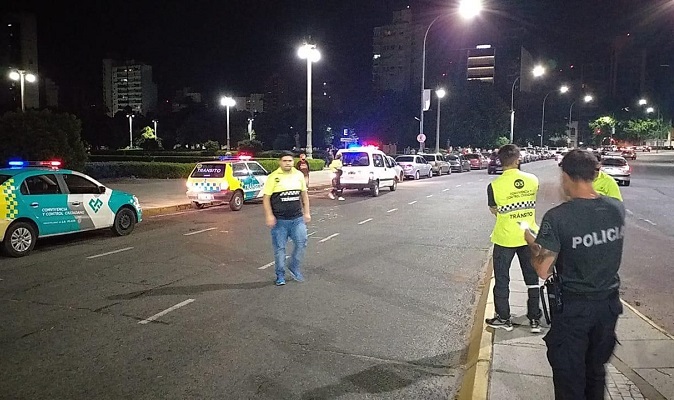 Durante los operativos llevados a cabo esta madrugada, personal del Municipio realizó retenes de control vehicular en inmediaciones al Parque Castelli y la Plaza Moreno donde se venían realizando juntadas multitudinarias de jóvenes.