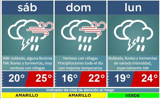 De acuerdo al reporte emitido por la Dirección de Hidrometeorología de la Comuna, “entre la tarde del sábado y el domingo tendremos tiempo ventoso con ráfagas, por lo que se establece el Nivel de Atención del Riesgo 'Amarillo'”.
