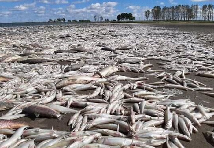 Los habitantes de esta ciudad ubicada en el interior de la provincia de Buenos Aires se sorprendieron cuando, al despertar por la mañana de este domingo, se encontraron con la imagen de los pejerreyes, carpas y bagres apilados en el suelo, a metros del agua.
