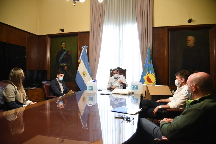 Como parte de un encuentro que se llevó adelante este martes en el Palacio Municipal, el Jefe Comunal recibió a las autoridades de la droguería Garzón, quienes realizaron la donación de casi medio centenar de bidones de alcohol en gel, lo que representan 225 litros; y de 10.000 barbijos. Dichos elementos serán utilizados por personal de Salud local en virtud de la pandemia por COVID-19.