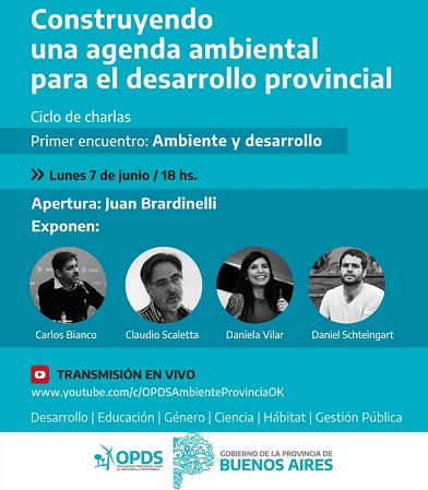 El ciclo “Construyendo una agenda ambiental para el desarrollo provincial” fue pensado para consolidar la construcción de la agenda ambiental Provincial. El lunes 7 de junio a las 18 se realizará la apertura y el primer encuentro, y se transmitirá en vivo por el canal de YouTube del Organismo Provincial para el Desarrollo Sostenible (OPDS).