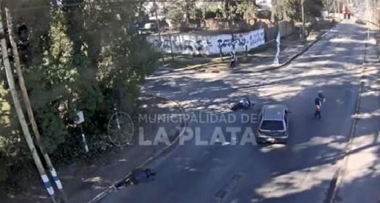 Un vehículo plateado marca Volkswagen, modelo Gol, chocó a una moto en la intersección de las calles 7 y 96. El motociclista golpeó duramente contra el asfalto. Al visualizar lo acontecido en tiempo real, agentes del Centro de Operaciones y Monitoreo de la Comuna (COM) dieron aviso al 911, según se puede observar en el vídeo de CAGL.tv