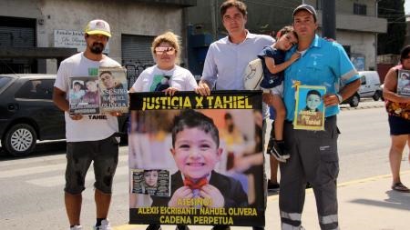 El padre y la madre de Tahiel, que viven a solo una cuadra y media del lugar, fueron acompañados nuevamente por toda su familia, vecinos de la zona, y niños y niñas que sostenían carteles con fotos del niño que falleció en una picada ilegal. El lunes arranca el juicio.