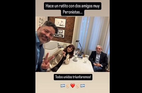 Gustavo Menéndez desde su cuenta en X posteó la foto de él y Aníbal reunidos con CFK y escribió: ""Con dos amigos muy peronistas... ¡Todos unidos triunfaremos!".