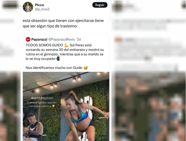 Sol Pérez, quien transita un embarazo de siete meses y medio, fue duramente criticada al compartir con su audiencia la estricta rutina de gimnasio que realiza. La influencer fitness se cansó de los comentarios y fue contundente al responderle a un usuario de X.