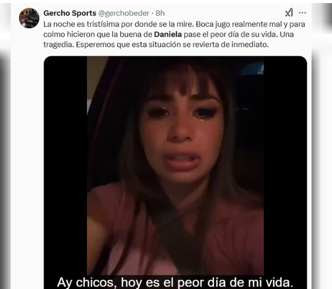 Un usuario señaló: “La noche es tristísima por donde se la mire. Boca jugo realmente mal y para colmo hicieron que la buena de Daniela pase el peor día de su vida. Una tragedia. Esperemos que esta situación se revierta de inmediato”.(NA)