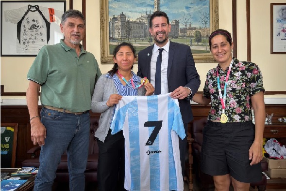 El oresidente del Deliberativo platense y el subsecretario comunal de Deporte recibieron a las integrantes de la Selección Argentina femenina de fútbol para ciegas, campeonas del Mundial Kochi India 2025.