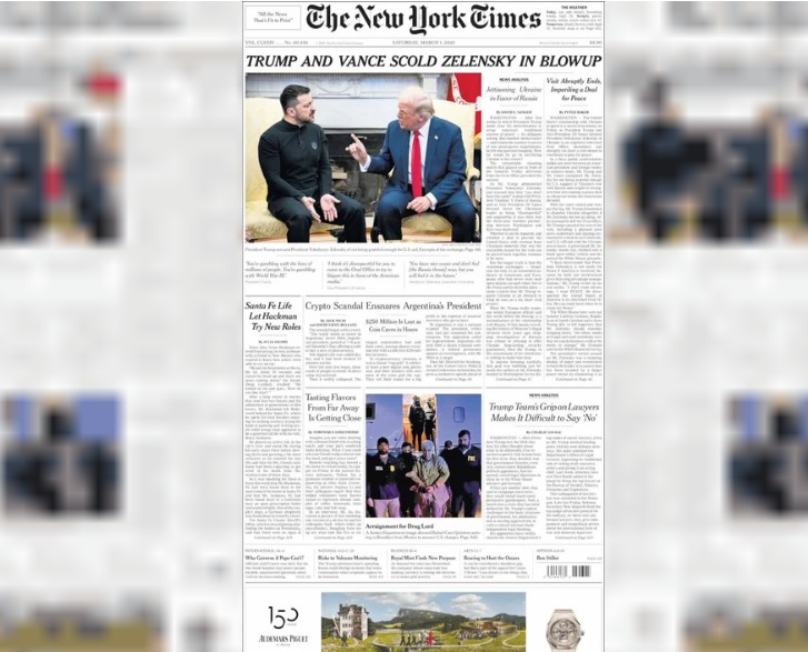 01-03-2025 | El presidente Javier Milei quedó en el centro de un escándalo internacional luego de que The New York Times publicara en su portada de este sábado 1 de marzo una investigaci&oacut