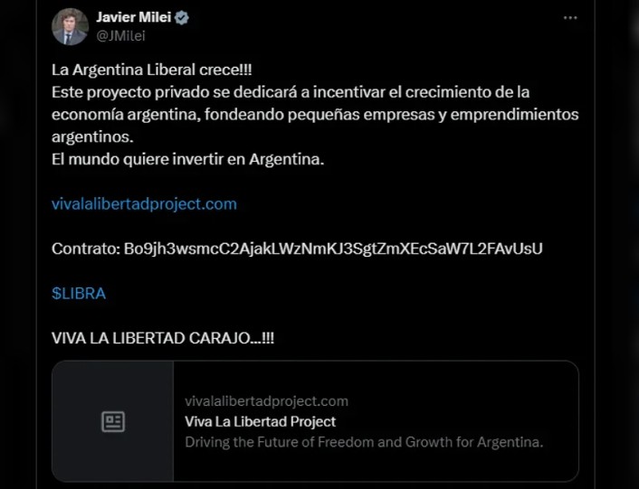 ESTAFA??? Milei promocionó token cripto $Libra "para incentivar el crecimiento de la economía" y desató un escándalo por rápida caída del valor del activo digital