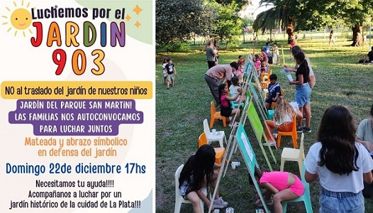 Este domingo la comunidad del Jardín 903 se moviliza frente a la decisión Alak de sacarlo del Parque San Martín