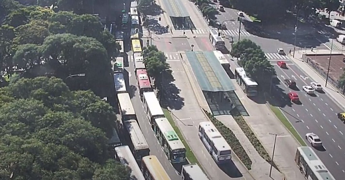 CABA: Choferes de la UTA estacionaron sus colectivos en la 9 de Julio en reclamo de vacunas y generaron un caos de tránsito
