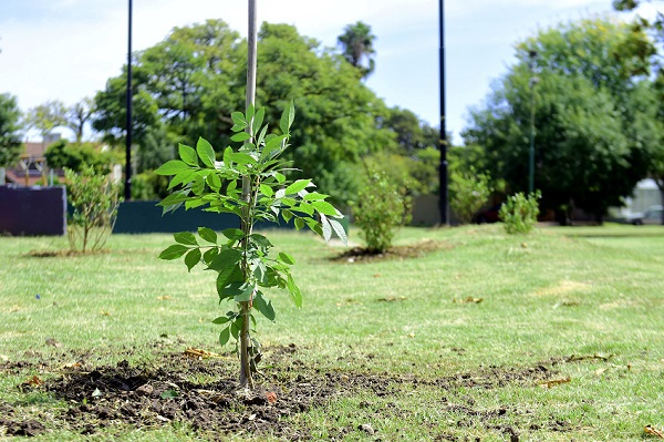 Plantan nuevos ejemplares en la Plaza Mitre de City Bell