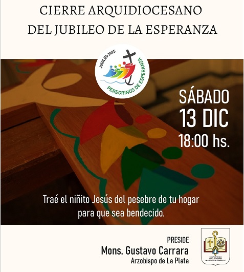 Este sábado 13 de diciembre en la Catedral de la Arquidiócesis de La Plata se llevará a cabo el cierre del Jubileo de la Esperanza. Monseñor Carrara invitó a participar y llevar el pesebre familiar para que sea bendecido.