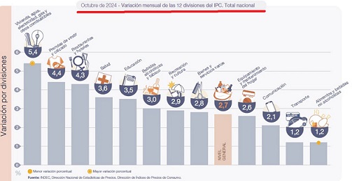 Argentina: La inflación bajó al 2,7% en octubre, la menor en tres años, acumula un 107% anual y un 193% interanual