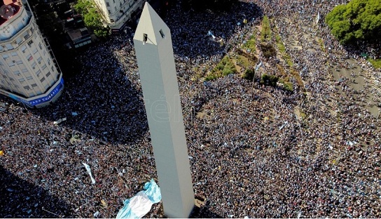 Miles y miles de hinchas, que llegaron desde todos los barrios porteños y el conurbano bonaerense, colmaron el centro de Buenos Aires, con la intersección de las avenidas 9 de Julio y Corrientes como eje, y celebraron la consagración de la Selección nacional en el Mundial de Qatar.