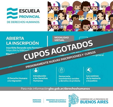 En menos de 48 horas se completaron la totalidad de cupos disponibles para los primeros cuatro cursos que ofrece la nueva Escuela Provincial de Derechos Humanos, que comenzarán a dictarse el próximo 26 de mayo de manera virtual.