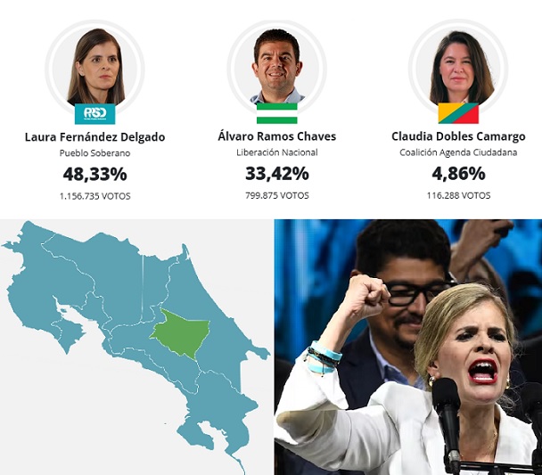 La politóloga Laura Fernández Delgado fue electa este domingo 1.° de febrero como la presidenta número 50 de la República de Costa Rica. Con el 48,5% de los votos, Fernández superó al candidato liberacionista, Álvaro Ramos Chaves, que consiguió el 33,3% de los sufragios. Con una participación del 70% del electorado, el abstencionismo del 30% fue el más bajo desde las elecciones presidenciales de 1998.