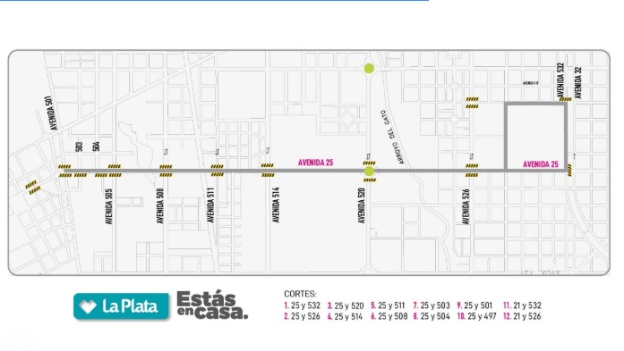 Conjuntamente, la Comuna informó que se interrumpirá el tránsito, en sentido City Bell – La Plata, en la Avenida 25 y las calles 532, 526, 520, 514, 511, 508, 503, 504, 501 y 497. Asimismo, se establecerán cortes en la calle 21 y su intersección con las calles 532 y 526.