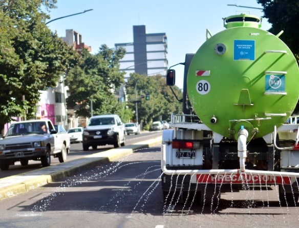 Tal como se informó, el Municipio le incorporó un sistema de riego a seis camiones, los cuales cuentan con una capacidad para contener 9 mil litros de una solución de agua y cloro y son capaces de desinfectar las calles de la ciudad.